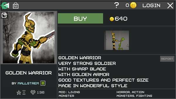 4、选择好一个模组,再去点击上面的BUY功能,消耗一定金币就能解锁的。