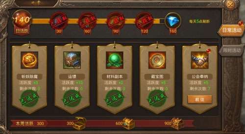 日常活动分为多个活动,每完成一个日常即可获得活跃值,每天活跃值可以获得大量奖励,更有周活跃奖励;押镖可以获得绑定元宝,镖车等级越高,奖励的元宝越多;
