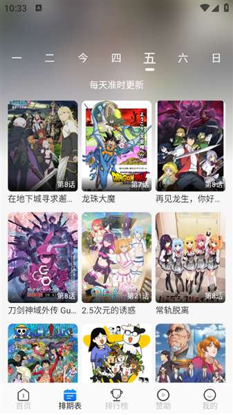 3、时间表主要分享动漫的每日更新。