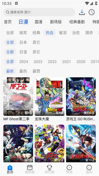 2、进入主页为用户推荐了许多不同类型的动漫资源,包括日本动漫、韩国动漫和国内动漫。