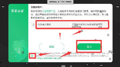1、下载好游戏之后打开,输入真实姓名和身份证号码然后点击打√然后提交。