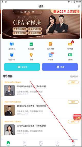 1、下载安装好会计跟我学软件,进入软件首页,点击我的。