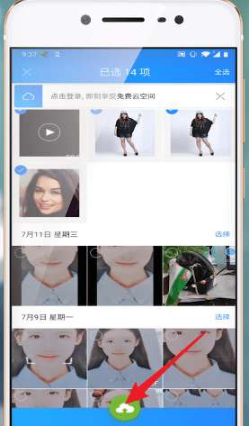 4、再点击【云】图标进行授权登录后,照片就备份成功了。