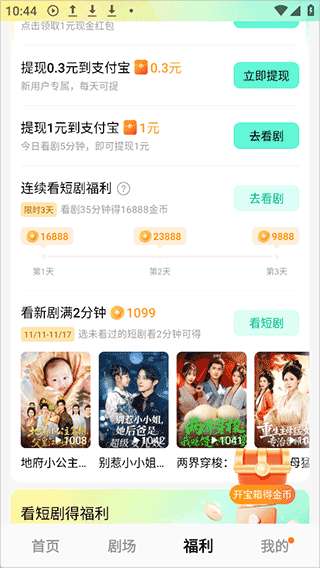 3、新人看完短剧后,可立即提现1元。