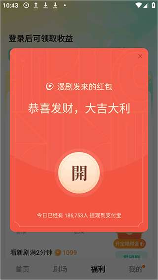 1、登录app后,进入“福利”界面领取新用户红包。