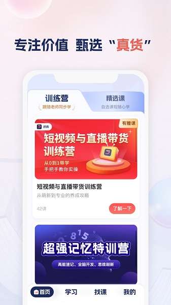 讲真是一款专注于个人价值提升的终身学习平台,汇聚专业团队提供涵盖养生知识、视频剪辑等多领域的学习内容。平台采用直播、录播、社群辅导等多种灵活教学方式,并融入AI技术,帮助用户高效利用碎片化时间掌握实用技能与专业知识。其课程体系注重严谨性和科学性,旨在培养健康的个人习惯和生活方式,助力用户实现全面成长。课程体系是按照用户终身学习和成长所需的路径构建的,以实用性为基础。