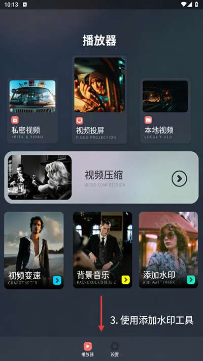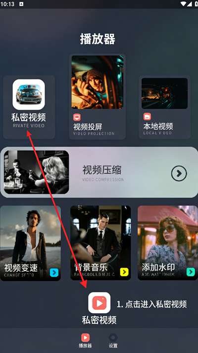 1、打开播放器软件,首页展示私密视频、视频投屏、本地视频等功能模块,可根据需求选择对应入口。
