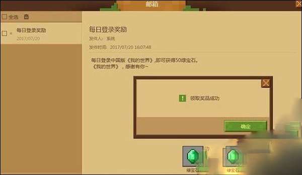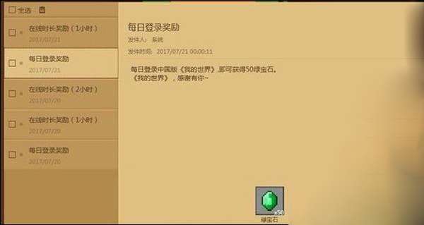 2、在线时间,每小时可以获得50绿宝石,每天最高只能获得2个小时的奖励,也就是100绿宝石。