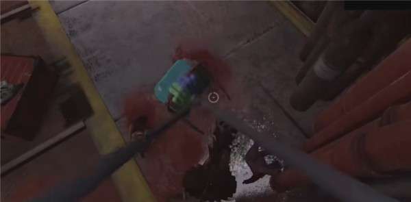 9、继续前行至左侧的门,打开门后会有蒸汽喷出(无需在意),穿过蒸汽,走到楼梯前并上楼,上楼后,你会发现一个操纵台,在这个大厅里,你需要使用蓝色手手收集四个发光的颜色方块(这些方块的位置各不相同),收集完成后,走到角落的门前,用蓝色手手射击门的把手并收回,以打开门进入下一区域。