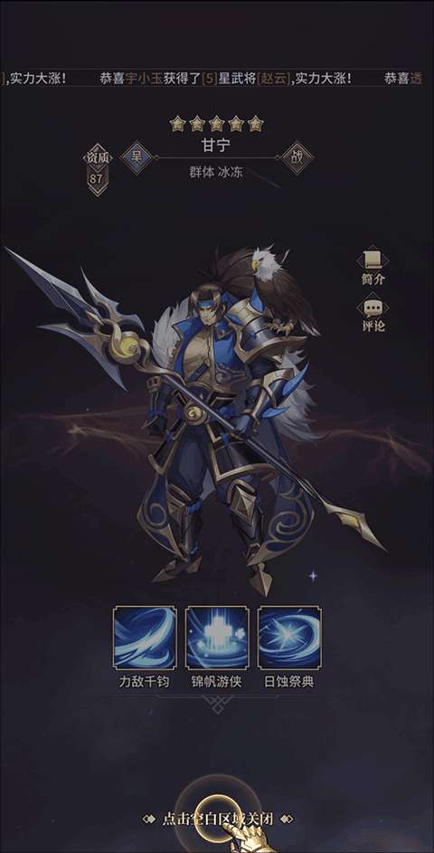 5、在这里点击空白处继续,在这里就获得了英雄将领。