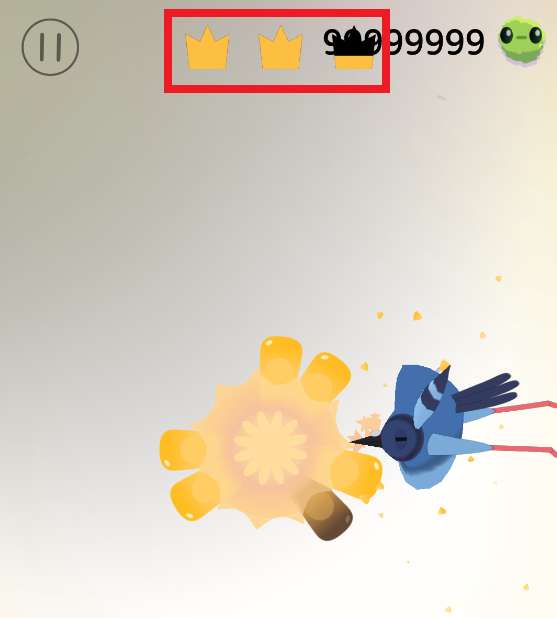 3、点击屏幕可以让鸽子开始吃玉米粒,注意上方的时间。皇冠为时间流逝,争取在结束的时候获得三个皇冠。