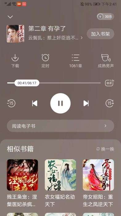 6、如果看累了的话,我们还可以使用听书模式来感受不一样的体验。
