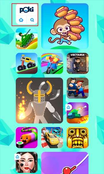 1、打开Poki小游戏app,用户可以在如图所示位置搜索小游戏