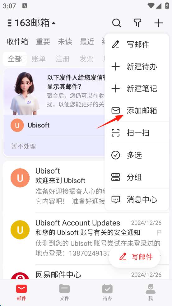 3、如果已经有邮箱,可以直接点击“添加邮箱”,没有就点击“注册邮箱”。