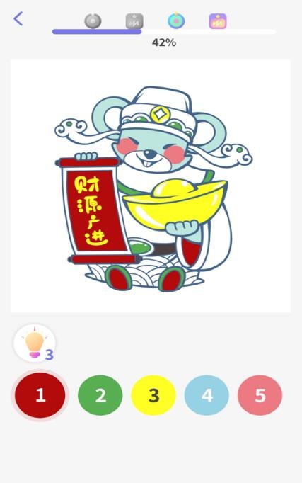 趣味画画这款手机上轻松画图的小游戏,在这里玩家们可以通过手机登录或者是游客登录,微信登录进入游戏中,然后开始选择自己想要去玩,或者是填色的图集。选择之后,点击开始游戏就可以进入了。在游戏的上方会出现四个操作图标,是根据玩家们游戏进度来显示的,下方则是编好数字的颜色选择按钮,游戏会给予玩家们三次免费提示的机会。整个界面的设计比较的简约,看着很有高级感,而且在登录界面,背景图片则是不同的颜料,还有画笔。