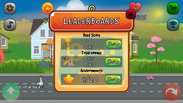 疯狂小鸡冲刺在这款跑酷游戏中,大家要操控的就是不同形象,外观的小鸡在这个城镇周边有一个叫大农场,里面饲养的小鸡总是很调皮,到处跑,而你要做的就是空了,在马路上进行移动,并去掉那些虫子,以及收集金币。但是要注意它与马路上的汽车是反方向行驶的,所以很危险,要及时的通过点击,让他更换一下移动的通道。