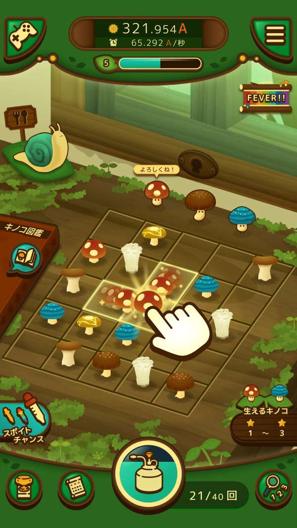 大胆小蘑菇那这款游戏中大家压住的就是通过合并圣洁的方式,拥有更多的蘑菇。这些蘑菇的生产速度很快,而且他们能够为他所以要不断的进行合并相同等级的相互拖动到一起就可以了。这款游戏中的设定有很多,而且大家可以点开图鉴看看,当前你拥有的蘑菇种类有哪些。因为是在一个室内的花园里进行种植,所以还会看到一些其他的动物们。