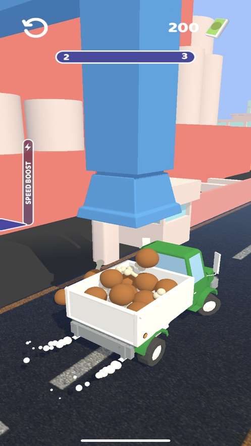 1、驾驶的速度游戏来控制,大家只要把控好移动的方向就可以,还有就是撞击纸箱障碍;