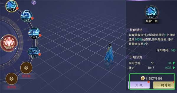 提升战斗技能将增加攻击伤害以及战力、攻击范围增大。