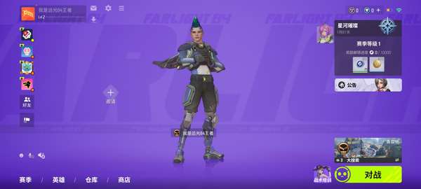 1、打开远光84手游,新玩家首先注册登录账号,进入后点击右下角对战;