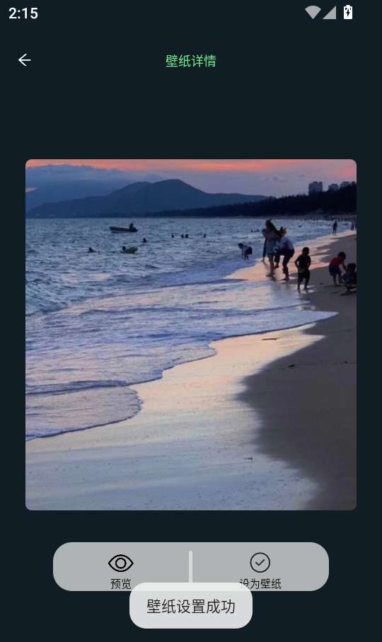 4、最后,进入“壁纸详情”界面,点击“设置为壁纸”按钮,完成该过程。