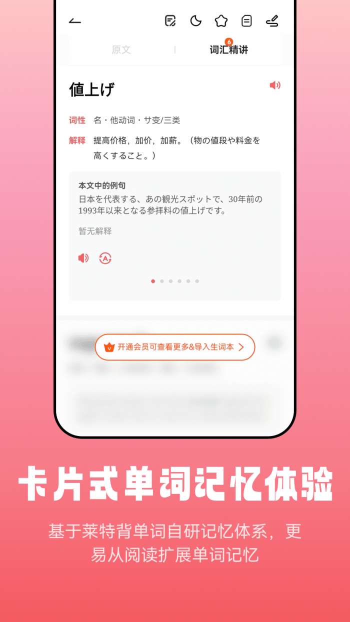4、与《莱特日语学习背单词》无缝集成,查词典、背单词轻松搞定。