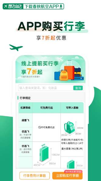 4、【服务说明】 春秋航空APP为您提供全面丰富的购票和行程消息服务,包括:机票预订、在线值机、在线选座、航班退改、行程消息提醒、航班动态查询、机票验真、机场助手、酒店预订等。