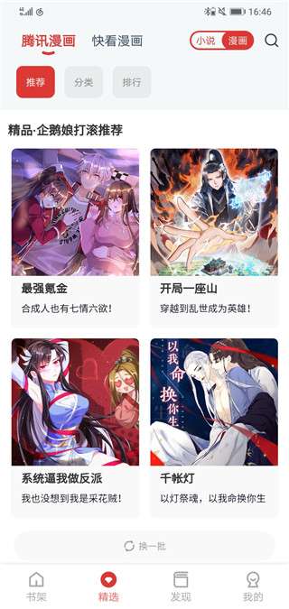 4、漫画区分为腾讯漫画和快看漫画,所以你不必担心找不到你想读的。