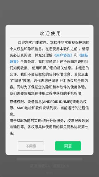 1、阅读用户协议和隐私政策之后点击同意。