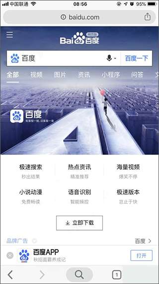 7、我们再次搜索 百度,这次发现可以进去网页了,说明有网络连接,我们就可以使用谷歌浏览器了。