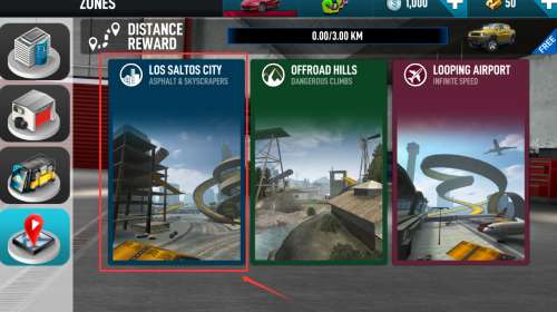 2、选择洛萨托斯城区域,体验柏油路摩天楼赛道。