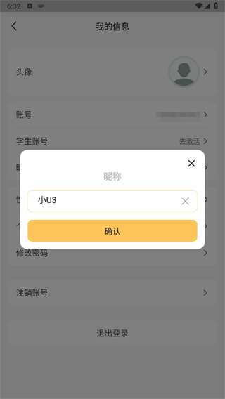 3、接着来到我的信息的页面中可以修改头像、性别、昵称等信息,我们点击【昵称】。