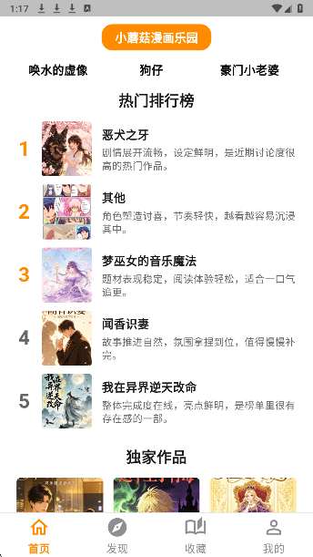 小蘑菇漫画无广告版亮点