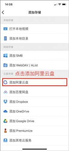 2、选择"新增存储"选项后,系统将跳转至存储管理界面,本指南以阿里云盘为例进行说明。
