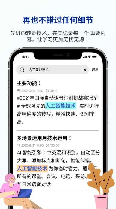 2、先进的转录技术,完美记录所有重要内容,让学习更安心。