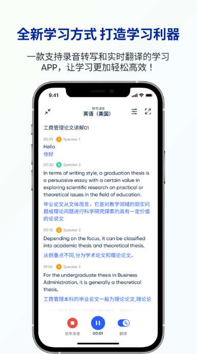 1、轻松记录和转写:一键开始录音,智能转写为文字,节省学习时间,提高学习效率。
