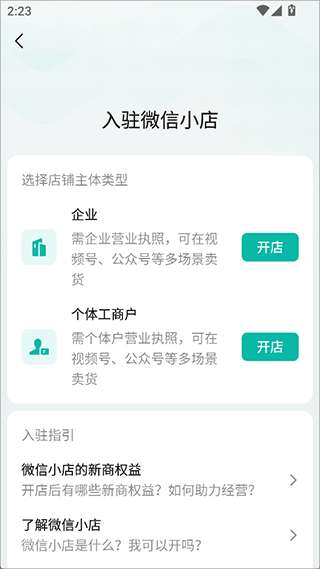 1、打开微信小店App可以看到微信小店入驻开通渠道。