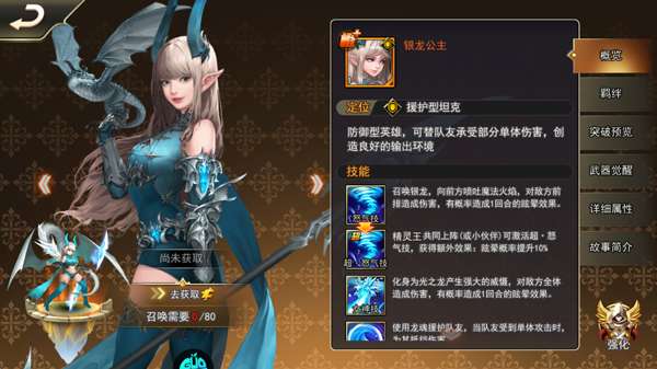 1、核心英雄:银龙公主(主坦)、爱之女神(输出)、花之女神(治疗)、守护女神(辅助)