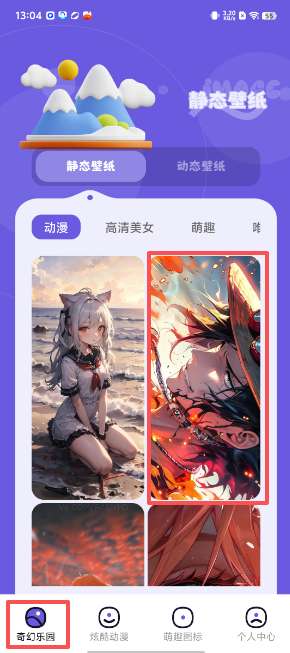 1、打开软件进入“奇幻乐园”页面,选择想要下载的壁纸。