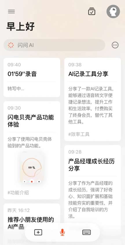 闪念贝壳是一款简单易用的免费录音软件,可以为用户提供多种录音服务,随时随地在线录制音频,里面的所有的录音服务都是免费,轻松让用户可以毫无顾虑地享受使用的乐趣,还具有丰富的功能,能满足用户的需求,也非常注重用户体验,让用户轻松便捷地进行录音操作,可以为各种场景录制音频,例如个人笔记,会议记录,讲座等,给用户带来全面的服务和体验,还具有丰富的功能和选项,可以轻松保存录制的音源。