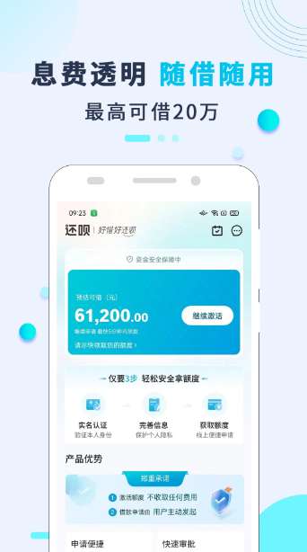 还呗是一款基于消费多场景的分期服务平台,由数禾科技发布于2016年2月正式进入市场。通过与持牌金融机构合作 ,为大众提供个人消费信贷服务,并为小微企业主提供贷款资金支持。还呗建立起完善的用户信息安全保护制度。在风险管理方面,还呗建立了一整套严格的风险管理流程及风险评价体系。并且全流程采用纯线上操作方式,帮助用户节省大量的时间成本。 还通过“APP+客服电话+微信公众号“的客服并行入口矩阵,实现高效率响应、高质量答疑。以数字技术搭建的线上商城,覆盖出行、餐饮、手机数码等消费热点领域。感兴趣的朋友不要错过下载。