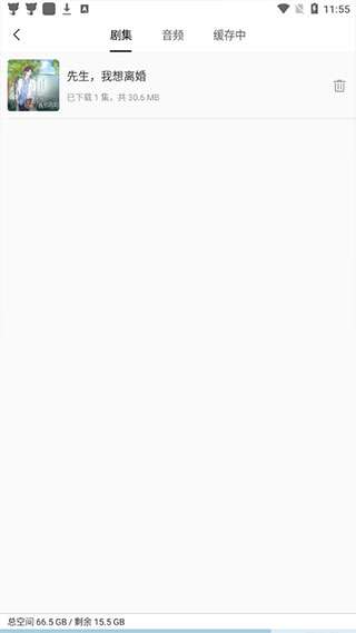 7、如果想删除下载的音频,可以点击后面的垃圾箱图标。