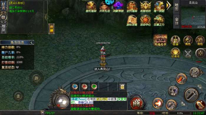 6、点击屏幕右侧的角色按钮,可查看任务属性、技能、神装以及轮回等。