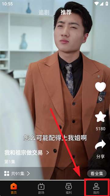 1、下载安装并打开漫森短剧app,点击我的。