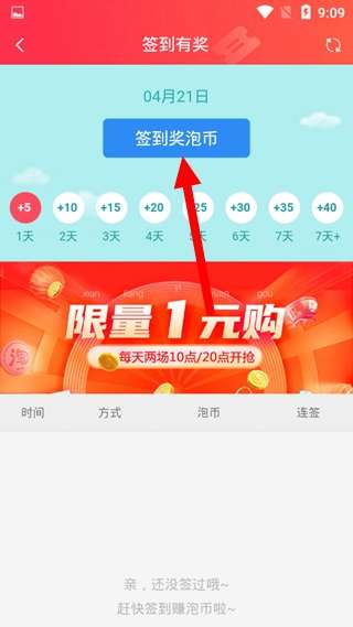 3、在签到有奖功能之中,我们可以点击签到选项就能获取泡币奖励。