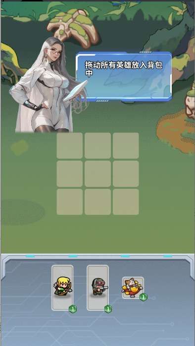 1. 第一步,玩家要将各类显示出的英雄拖拽至背包的格子当中。
