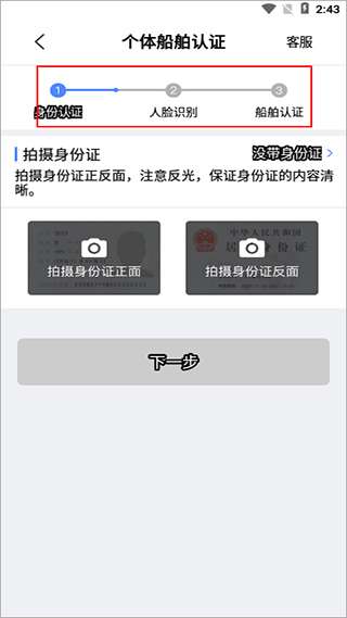 2、进入软件到平台中的用户需要在个人中心填写信息信息,完成个体船舶通过个人的实名认证便可以进行使用了;