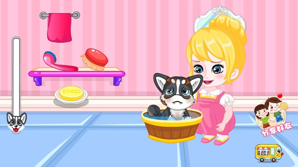 蠢萌的哈士奇在这款游戏中,大家可以参与哈士奇的养成操作,在这里玩,咱们扮演的是一个金发的,如洋娃娃般的女孩,他的家人为了给予他多的陪伴,所以给她带来了一只小哈士奇,作为他的新伙伴。在这里小女孩也就是玩家,就需要来照顾这只可爱的哈士奇了。