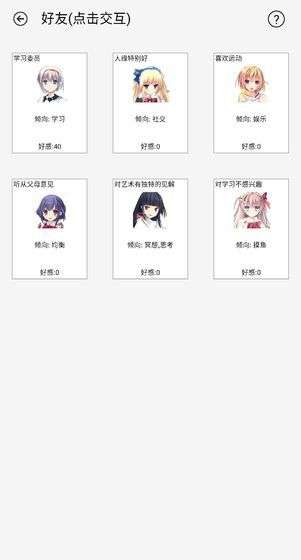 2、点击好友板块,可以看到大家的好友版面上面有他们的分别的职称,或者是互动的好感度,还有当前他们的状态有的人是离线状,还有的人是学习状态。