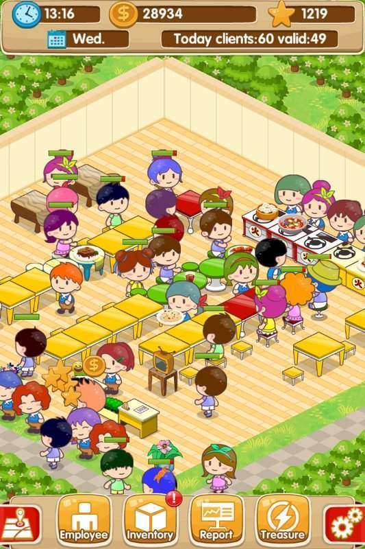 玩家得让顾客尽快受到很好的服务,一个跑得快的服务员必不可少,厨艺高超的厨师也会让顾客更满意。满意的顾客不仅付钱,还会产生人气,人气高了饭店才能越扩越大噢!